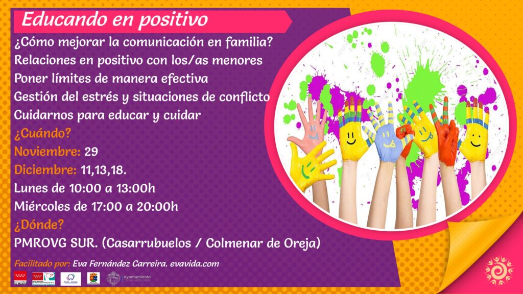 Conociendo las diferentes etapas evolutivas de l@s menores para facilitar la comunicación, poner en práctica la educación positiva como herramienta que nos facilita relacionarnos y establecer límites, gestionando emociones y autocuidarnos para poder educar de manera saludable.